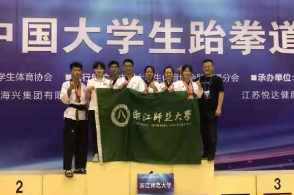 7月25日,中国大学生跆拳道锦标赛在江苏盐城圆满落幕,经过四天的激烈拼搏,beat365正版唯一官方网站代表队取得一金三银四铜、三个第五,总共11块奖牌以及甲组女子品势团体总分第二名、甲组男子品势团体总分第三名的优异成绩,同时被授予“精神道德风尚运动队”的荣誉称号。