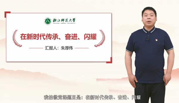 朱厚伟老师参赛的题目为《在新时代传承、奋进、闪耀》,讲述了自己从本科求学到本校保研、再到博士毕业回归母校工作的奋进故事,呈现了贫困家庭孩子的成长历程,以小见大,向学生传达了新时代青年党员拼搏奋进的力量。
