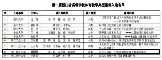 近期,beat365官网姜小平老师主持的公共体育课程《合作与创新:小组流瑜伽混合式教学的实践》入选第一届浙江省高等学校体育教学典型案例。
