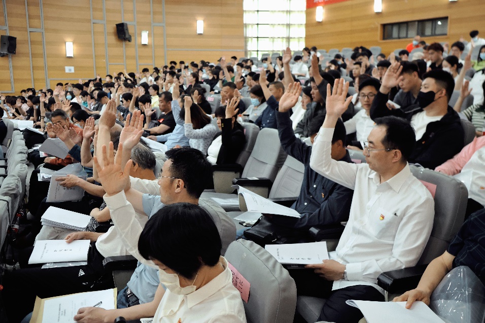 5月20日上午,中共beat365正版唯一官方网站beat365正版唯一官方网站党员大会在外语学院报告厅举行,会议由学院党委副书记林振调主持,165名师生党员参加大会,学院院长李启迪、校纪检监察科科长黄燕明列席会议。