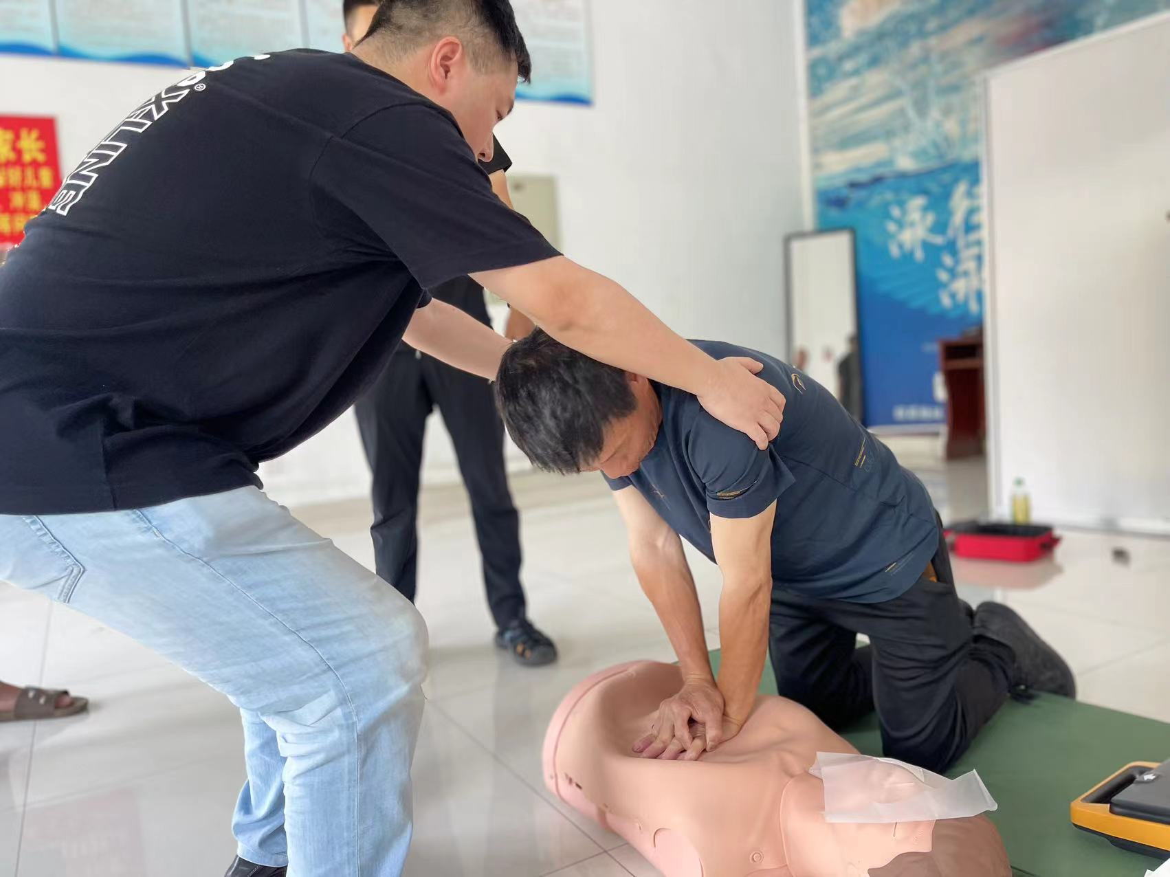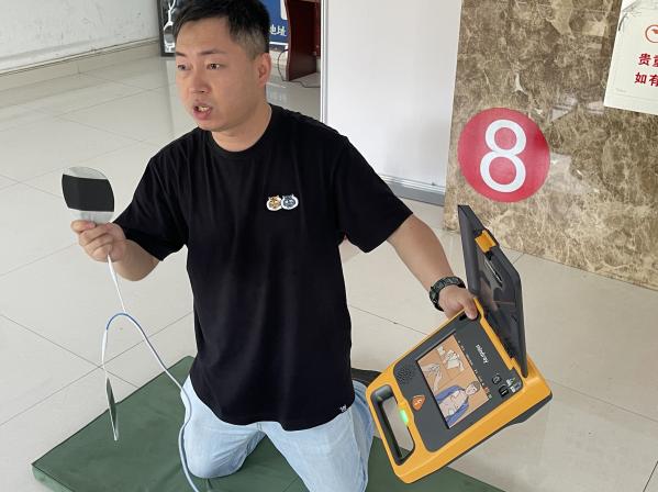 培训中,黄文俊强调了急救的重要性,通过现理论讲解和现场实操相结合的方式,深刻讲解了心肺复苏与自动体外除颤器的适用范围、操作步骤、操作要点和注意事项。参加培训部分人员现场进行了模拟演练,黄文俊进行了详细现场指导,并现场为参训人员解惑答疑。