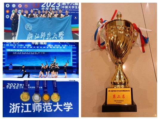 5月29日至6月2日,第16届中国大学生体育舞蹈锦标赛在四川省绵阳市涪城体育馆开幕,beat365正版唯一官方网站体育舞蹈代表队12名体育舞蹈运动员在教练姜小平带领下,经过激烈角逐,获得2金2银1铜的好成绩(丙A组艺术表演舞亚军,甲组单人单项恰恰冠军,单人单项牛仔冠军,单人单项伦巴亚军以及单人拉丁季军),创浙师大体育舞蹈队历史最好成绩。此外,教练姜小平获“优秀教练员”称号。
