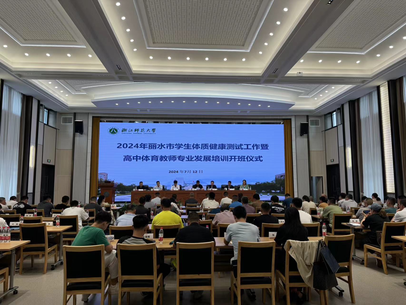 7月12日,由丽水市教育局主办、beat365官网承办的2024年丽水市学生体质健康测试工作暨高中体育教师专业发展培训班开班仪式在beat365官网举行,丽水市教育局党委委员、副局长谢瑞波,丽水市教育局基教处副处长詹鑫,丽水市教研院体育教研员胡伟,学院党委书记姜洪友,副院长何晓龙,党委委员、公体部主任沈沈军,授课专家、浙江工业大学体育军训部教授王玉秀出席开班仪式,培训班80余位学员参加开班仪式。
