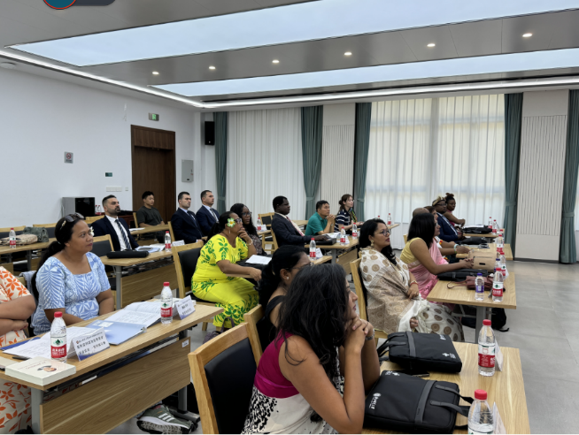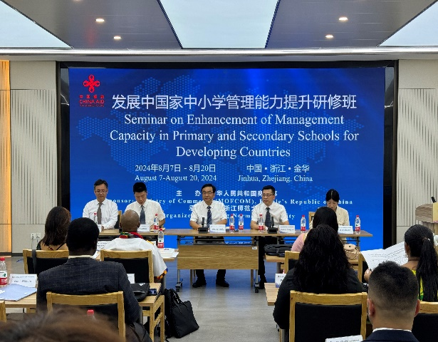 8月7日下午,由中华人民共和国商务部主办、beat365正版唯一官方网站承办的“发展中国家中小学管理能力提升研修班”开班仪式在正阳楼会议中心举行。beat365正版唯一官方网站校务委员会副主任张根福,beat365正版唯一官方网站党委书记姜洪友、项目负责人王海红、班主任宋战兵以及来自萨摩亚、南非、泰国、毛里求斯、津巴布韦、伊拉克、埃塞俄比亚等发展中国家的31名学员参加开班仪式,学院副院长何晓龙主持开班仪式。