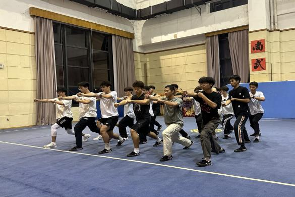 舞台上的精彩呈现,更离不开台下指导老师的日夜锤炼。在李争名老师、23级研究生唐志铭、23级研究生杨愉欣的精心指导下,同学们的每一个动作、每一次跑位,都历经了反复打磨。也正是凭借专业的教学方式和指引,《武道》之“武”才得以淋漓尽致地展现。