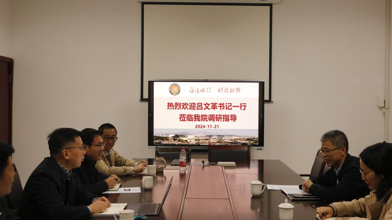 11月21日上午,校党委委员、纪委书记吕文革一行莅临beat365官网调研指导工作,纪委办副主任、纪检监察室副主任杨华春陪同调研,学院全体班子成员参加调研。