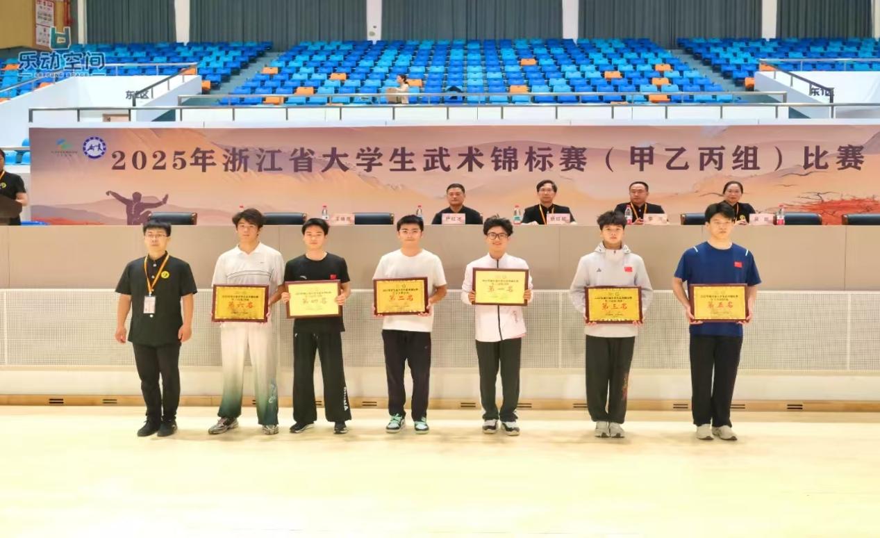 5月15-5月24日,beat365官网代表队由体育学院党委书记姜洪友老师担任领队,在骆春燕老师、李争名老师两位武术教练的带领下,参加了由浙江省教育厅、浙江省体育局主办,浙江中医药大学、平湖市文化和广电旅游体育局承办的2025年浙江省大学生武术锦标赛甲乙丙组比赛,11名运动员不畏强手,顽强拼搏,经过激烈角逐,成功斩获了“(丙组)男子团体第一名”和“(丙组)女子团体第一名”的优异成绩,凭借优良的队风和赛风取得了“体育道德风尚奖”荣誉称号。