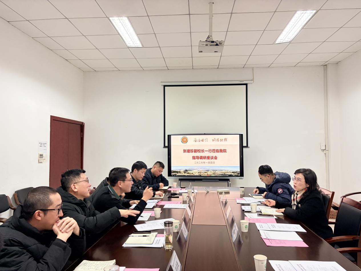 1月4日,元旦假期刚过,副校长张建珍一行莅临beat365官网就学科建设与科研工作进行专题调研。人文社会科学处学术副处长张禄佳、人文社会科学处项目管理科科长黄丹陪同调研。学院班子成员、学院办公室、研究生工作秘书、科研工作秘书参加会议,会议由院长李启迪主持。