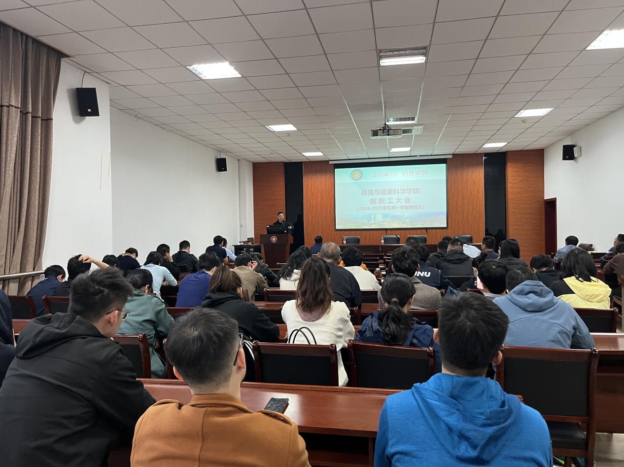 11月14日上午,体育学院在大会议室召开了教育实习反馈大会,学院全体教师参会。体育教育专业主任陈云富老师从实习生教学设计的能力、教学手段的运用、教师角色三方面存在的不足进行分析,提出老师们在平时的教学过程中要努力做到以下几点:一是强调教学设计的重要性,贯彻新课标思想,加强设计的创新与合理性,采用丰富教学手段,营造良好的学习氛围。二是重视教师角色的基本素养,注意教姿教态、音色音调、课程节奏、内容表达等方面,确保教学安排有序合理。三是注意教学实践的细节,注重加强学生专业技能水平,保证课堂常规的必要环节,关注学情并及时反馈。