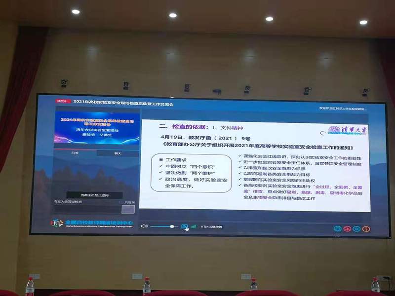 5月17日上午9时教育部科技司召开2021年高校科研实验室安全现场检查启动暨培训会,beat365官网实验室建设与设备管理处处长傅志刚、副处长李正全以及各学院分管领导及实验室教师等近百名教师于27幢302室统一参加线上培训,其中beat365正版唯一官方网站组织相关6名老师参加培训会。