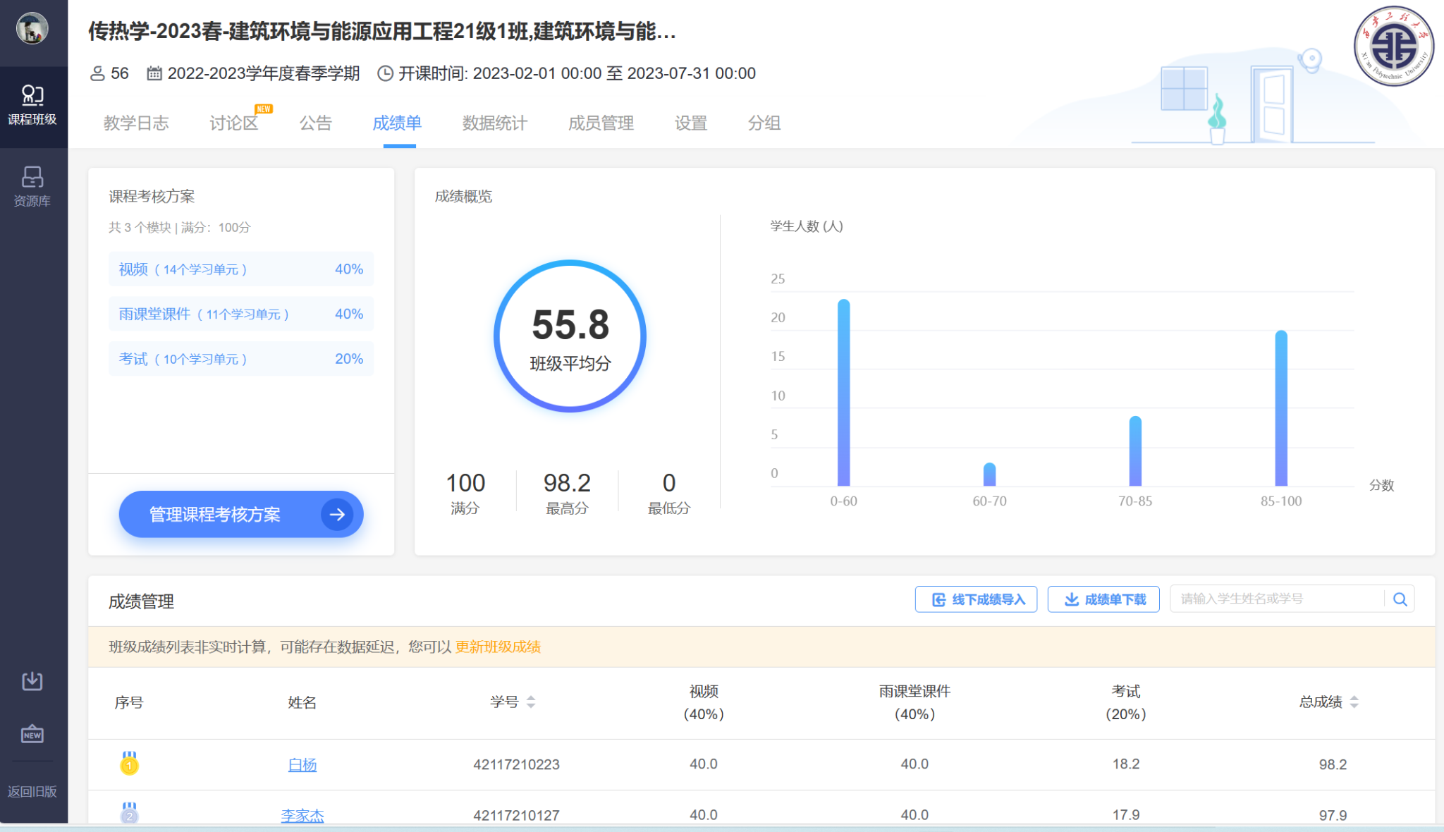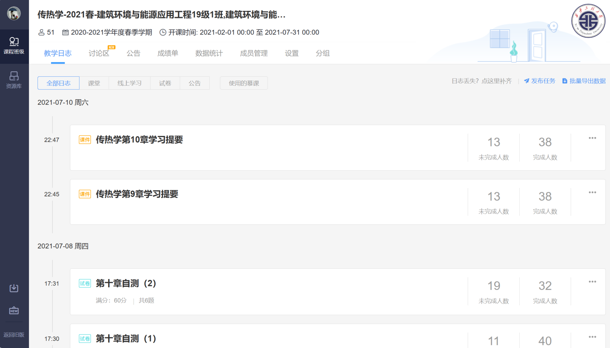 《传热学》课程是西安工程大学于2020年7月立项的校级线上线下混合式一流课程。课程面向本校建筑环境与能源应用工程专业学生开放,截止2023年该专业2018——2021级216位学生已经完成线上线下学习,课程线上部分在雨课堂学习平台运行。《传热学》课程在雨课堂学习平台完成了课程网络资源的建设,包括课程介绍、教学大纲、课程重点难点分析、教学课件、习题库、微课程建设。建立了线上平台的的自学、自查复习模式。