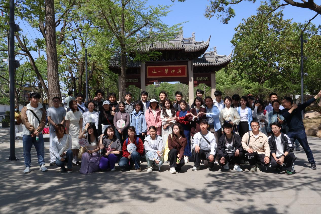 同学们在倾斜的虎丘塔前分析其屹立千年的结构奥秘,围绕“真娘墓”“憨憨泉”等古迹创作摄影作品,用镜头捕捉传说与现实的交织。在“二仙亭”前,“梦中说梦原非梦,元里求元便是元”的楹联阐释了园林的意境营造,正需这般虚实相生的哲学。