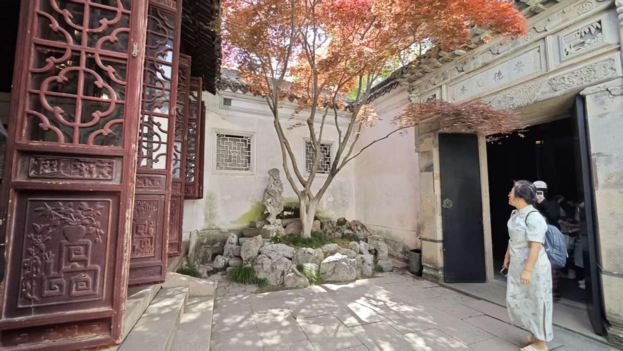 园主曾以“春赏牡丹、夏听雨、秋闻桂、冬观雪”为生活志趣,同学们发现,园中植栽布局暗合四时更迭:南墙芭蕉迎夏,西隅丹桂沁秋,东庭蜡梅傲冬,北轩玉兰报春。这不仅是造景,更是古人时间观的物化,这是园林的时空叙事逻辑。