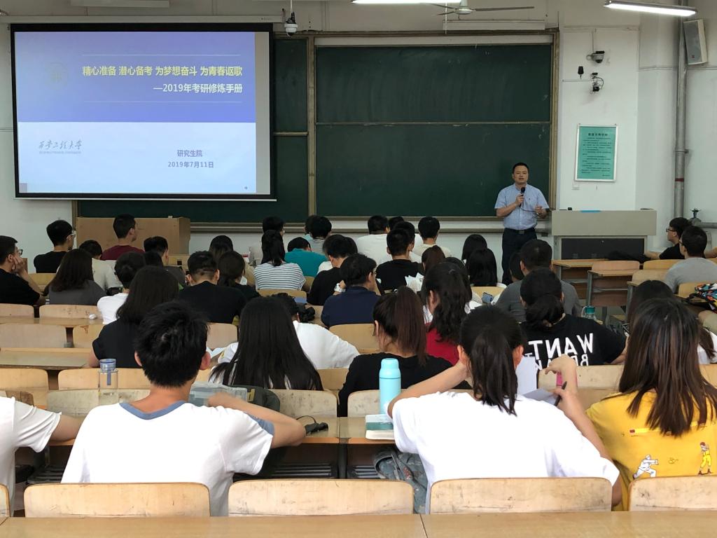 2019年7月11日,beat365中文登录入口在临潼校区教学楼B-133室召开2019年考研动员会。参加会议的有学院副院长强天伟、学生工作办公室主任凌旭、2016级辅导员王春元及2016级全体学生。会议由凌旭主持。