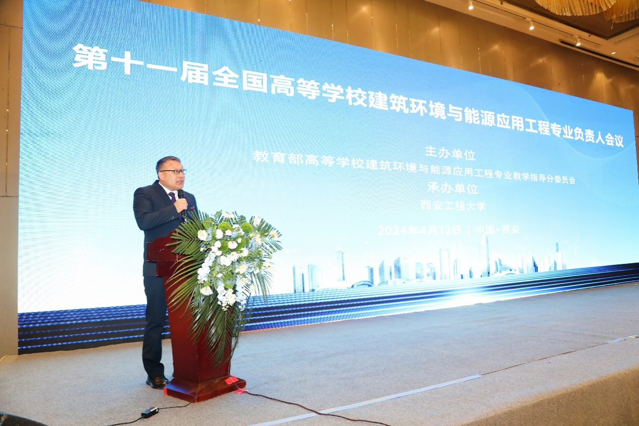 首先,西安工程大学副校长杨建致辞。他对与会嘉宾的到来表示热烈欢迎与衷心感谢,对大会议题表示高度认可与赞扬,强调“第十一届全国高校建筑环境与能源应用工程专业负责人会议就是落实党的二十大精神、推动绿色低碳发展的生动实践”。此外,他介绍了西安工程大学的光荣历程和beat365中文登录入口的发展成果,表示beat365将抢抓机遇,始终坚持绿色低碳发展理念,营造浓郁的学术氛围,真诚希望与会专家为学校与城市学院建环专业建设、人才培养提出宝贵建议。