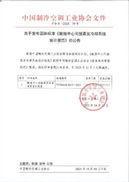 beat365与华为等单位共同编制的团体标准《数据中心间接蒸发冷却系统设计规范》正式发布