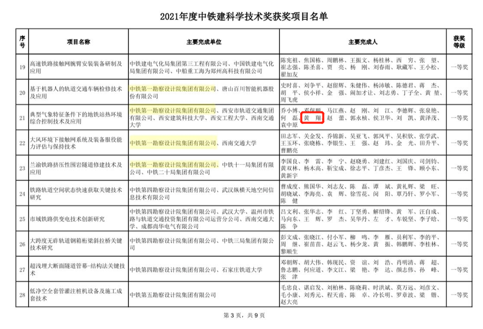 beat365建环系黄翔教授参与的由中铁第一勘察设计院集团有限公司、西安市轨道交通集团有限公司、西安建筑科技大学、西安工程大学、西南交通大学等五个单位联合申报的项目“典型气象特征条件下的地铁站热环境综合控制技术及应用”荣获2021年度中铁建科学技术一等奖。