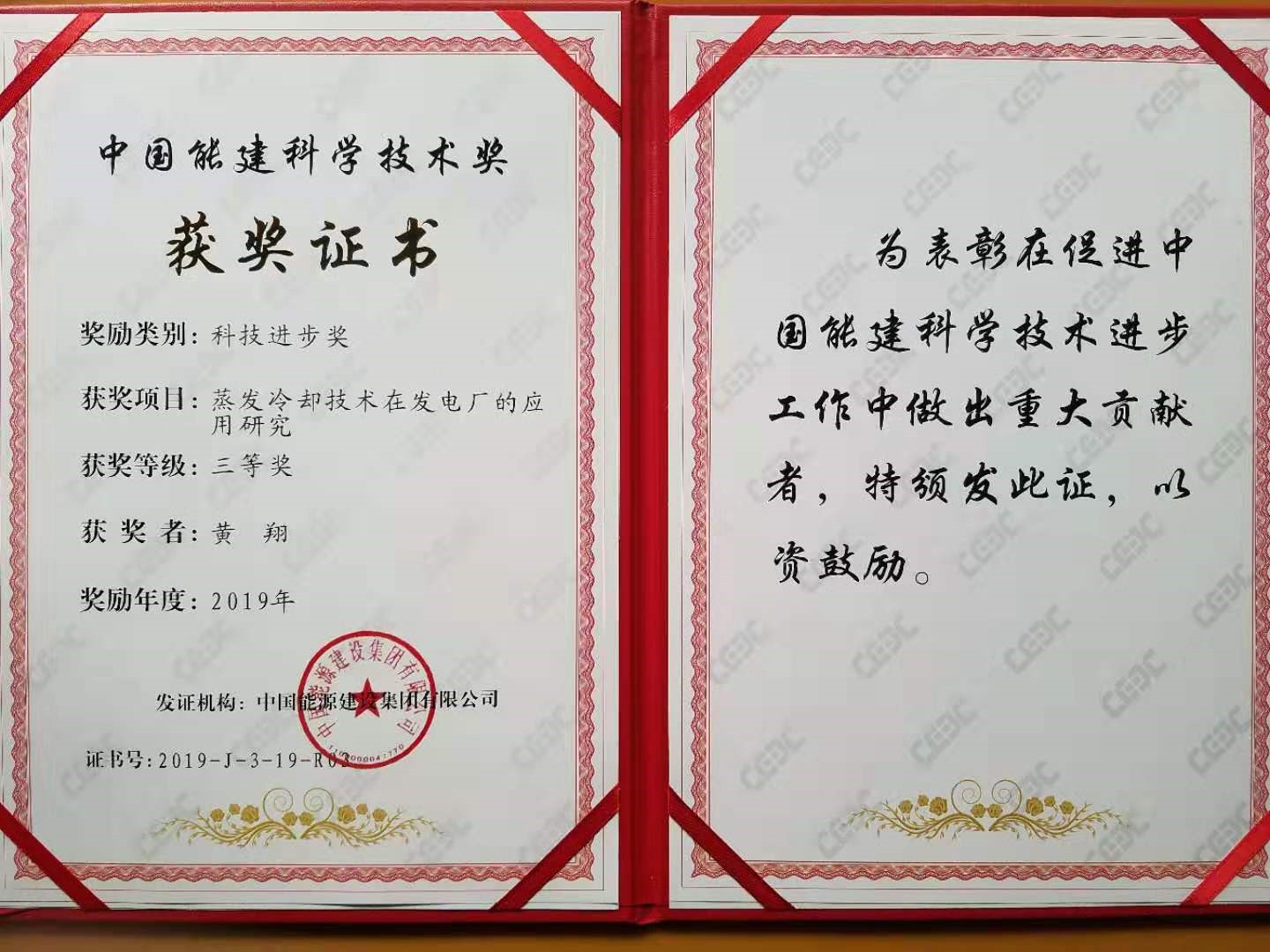 “中国能建科学技术奖”奖项由中国能源建设集团审核并备案,旨在调动能源建设领域工作者的积极性和创造性,奖励能源建设应用中的科技创新成果和科技创新产品,为提高科技创新以及国家节能减排事业做出的重要贡献。本次评选共99个项目入围,经形式审查、专家网评、专业组初评、科技委终评等多个环节严格筛选,最终确定了48个获奖项目,含3项技术发明奖项目、45个科技进步奖项目。获奖项目中,由中国电力规划设计总院有限公司、西安工程大学、中国电力工程顾问集团华北电力设计院有限公司、中国电力工程顾问集团西北电力设计院有限公司、中国电力工程顾问集团华东电力设计院有限公司等5个单位联合申报的“蒸发冷却技术在发电厂的应用研究”项目荣获中国能建科学技术三等奖。