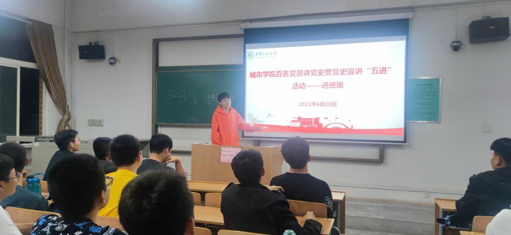 为扎实推进党史学习教育入脑入心,在传承红色基因中增强广大学子守初心、担使命的思想自觉和行动自觉。城市学院近期开展“党史宣讲‘五进’暨进班级”主题活动,打造全覆盖、多维度的学习体系,辐射全院、覆盖全员。