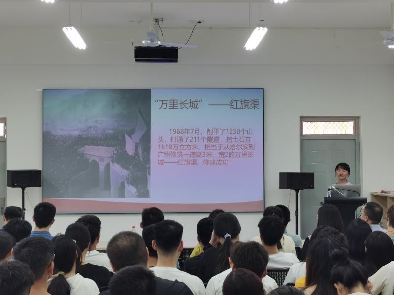 宣讲活动在与会人员高唱《中华人民共和国国歌》的歌声中拉开序幕。学院“初心”党史宣讲团2位成员围绕中国共产党的百年光辉历程和取得的伟大成就作了专题宣讲。宣讲团成员、土木类2004班王哲曦同学以《太行丰碑——红旗渠》为题,通过一个个鲜活的英雄故事、一段段难忘的岁月记忆生动而深刻解读了自力更生、艰苦创业、团结协作、无私奉献的红旗渠精神;宣讲团成员、环设1802班肖宇同学以《重温红色岁月,传承长征精神》为题,从“伟大的长征精神”、“弘扬长征精神,走好新的长征路”等几个方面对长征精神进行了深入浅出的解读。