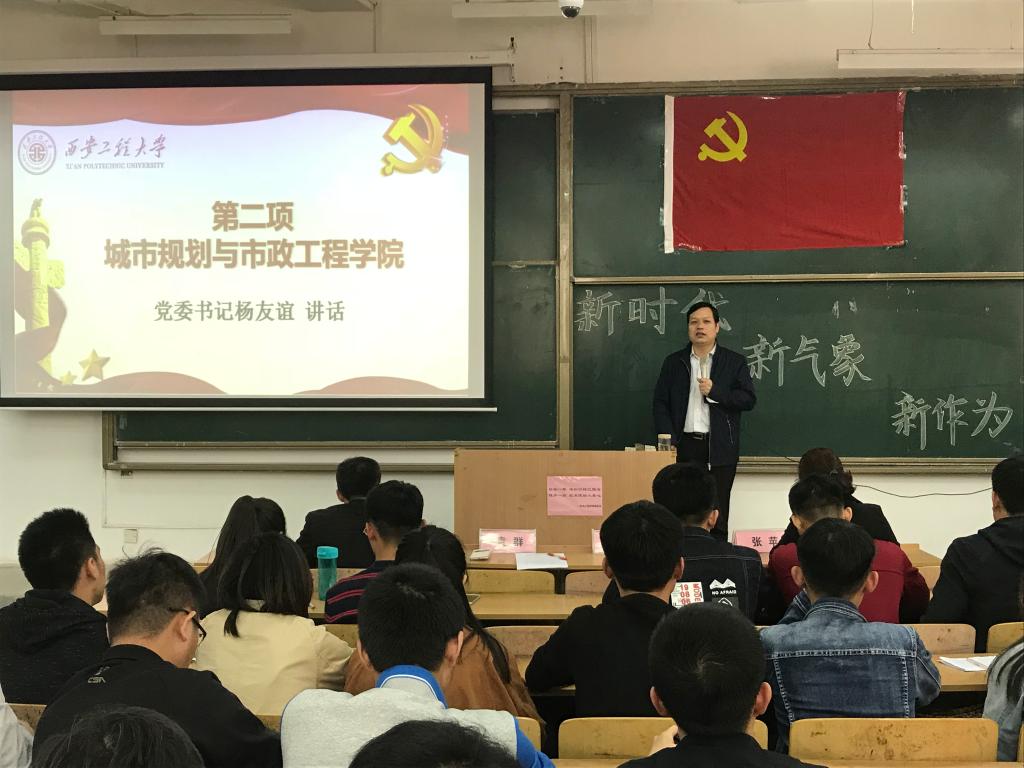 2018年3月27日中午12:30,beat365中文登录入口在西安工程大学临潼校区B-133教室召开主题为“新时代新气象新作为”的全体学生党员大会。参加大会的有beat365中文登录入口党委书记杨友谊,党委副书记袁群,辅导员张苹、王春元以及学院全体学生党员。会议由党委副书记袁群主持。
