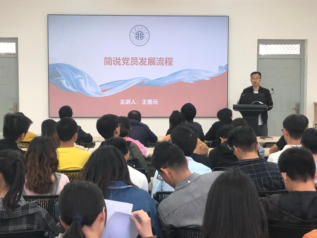 第二场培训会上,学生工作办公室主任、学生组织党支部凌旭主讲了《支部委员职责解读》,从支部书记职责、组织委员职责、宣传委员职责等方面对支委的职责进行了详细解读。同时强调作为学生党员要积极履行党员职责,积极发挥模范带头作用,积极学习、努力上进。随后研究生第三党支部书记王春元主讲了《简说中国共产党党员发展流程》。