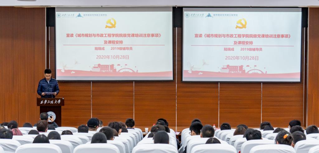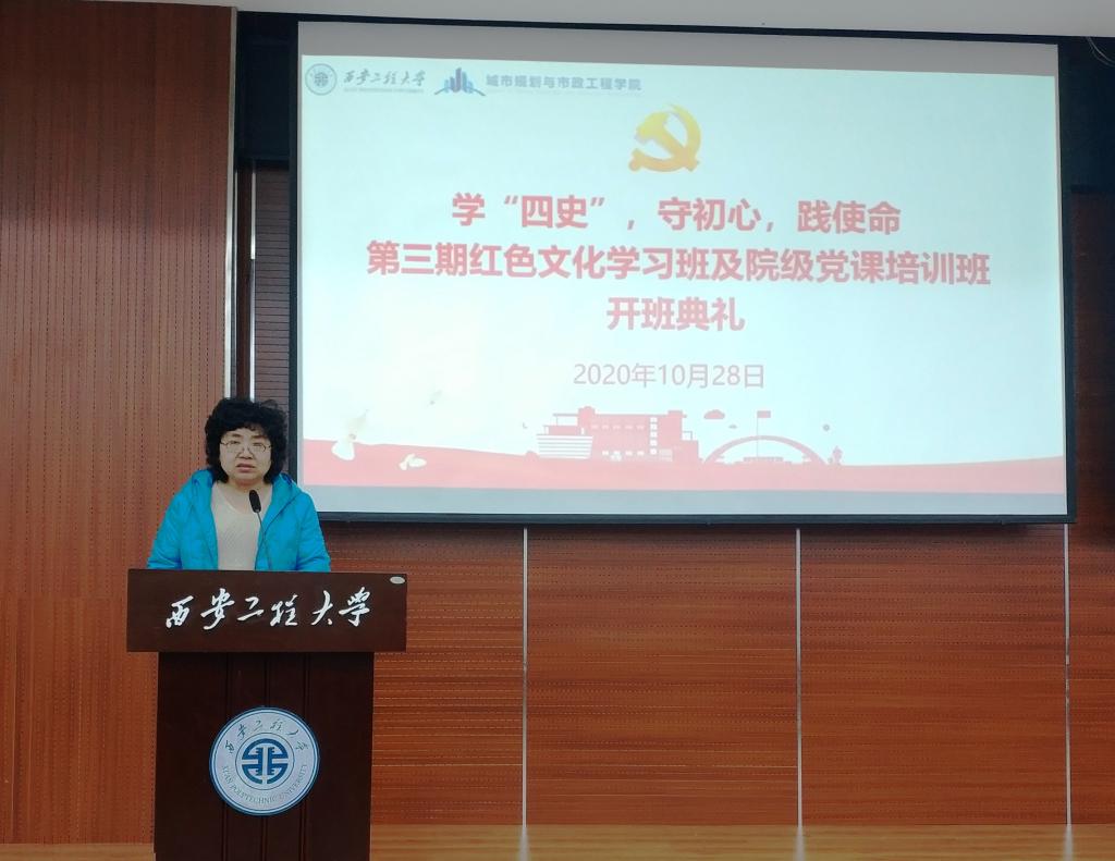2020年10月28日,beat365中文登录入口在临潼校区图书馆二楼报告厅举行“学‘四史’,守初心,践使命”红色文化学习班及院级党课培训班开班典礼。beat365中文登录入口党委书记杨友谊,学生工作办公室主任凌旭,辅导员陆瑞成、王春元以及培训班251名学员参加了本次典礼。开班典礼由学院党委副书记袁群主持。