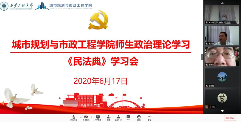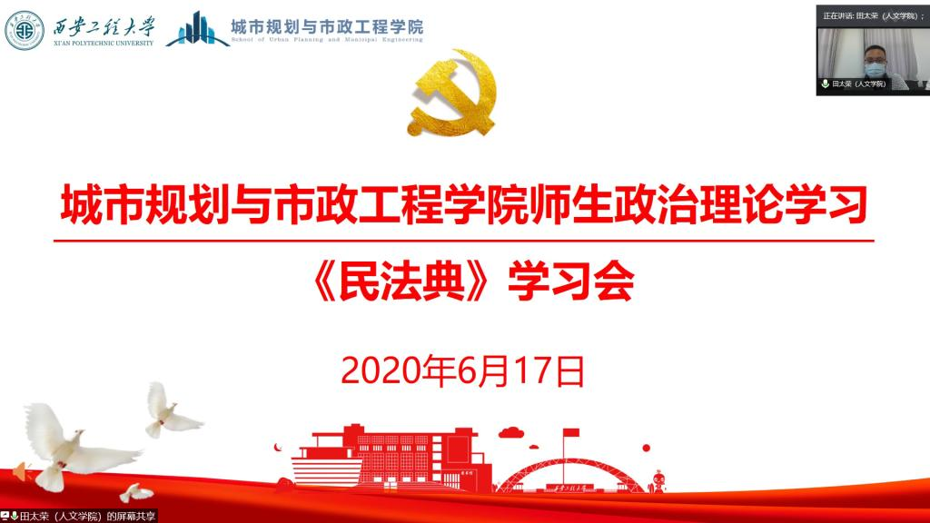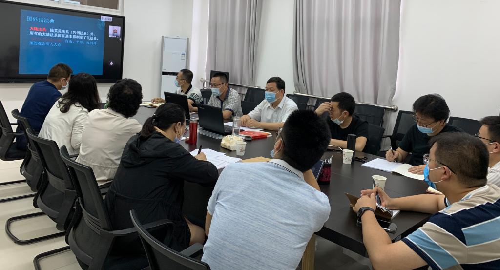 2020年6月17日下午,beat365中文登录入口在临潼校区8-301会议室和腾讯会议同步召开学院师生政治理论学习会,邀请人文学院田太荣副教授做学习《民法典》专题报告。