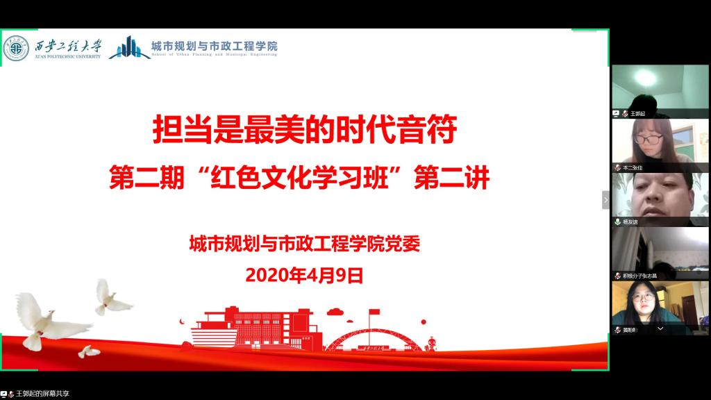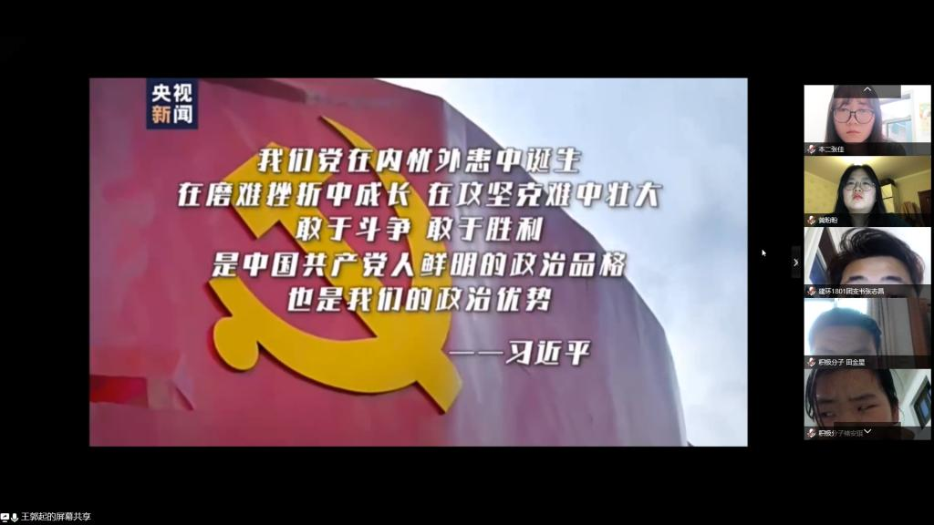 为进一步加强大学生党员的理想信念教育,培养党员的担当精神,2020年4月9日晚19时,beat365中文登录入口第二期“红色文化学习班”举行线上第二讲。参加学习班第二讲的有学院党委书记杨友谊、辅导员王春元以及第二期学习班全体学员。