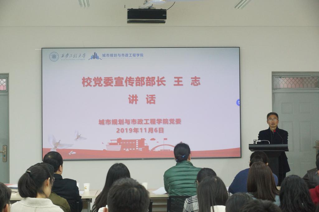2019年11月6日下午,为进一步深入开展“不忘初心、牢记使命”主题教育,增强学生党员读原著、学原文、悟原理的意识,学院在临潼校区8-322会议室举行“红色文化学习班”开班仪式。参加会议的有校党委委员、宣传部部长王志,校党委组织部正处级组织员邢瑞芳,校党委宣传部新闻中心主任张琪,学院党委书记杨友谊、副院长房平、学工办主任凌旭、辅导员陆瑞成、王春元及学院55期、56期预备党员。会议由杨友谊主持。