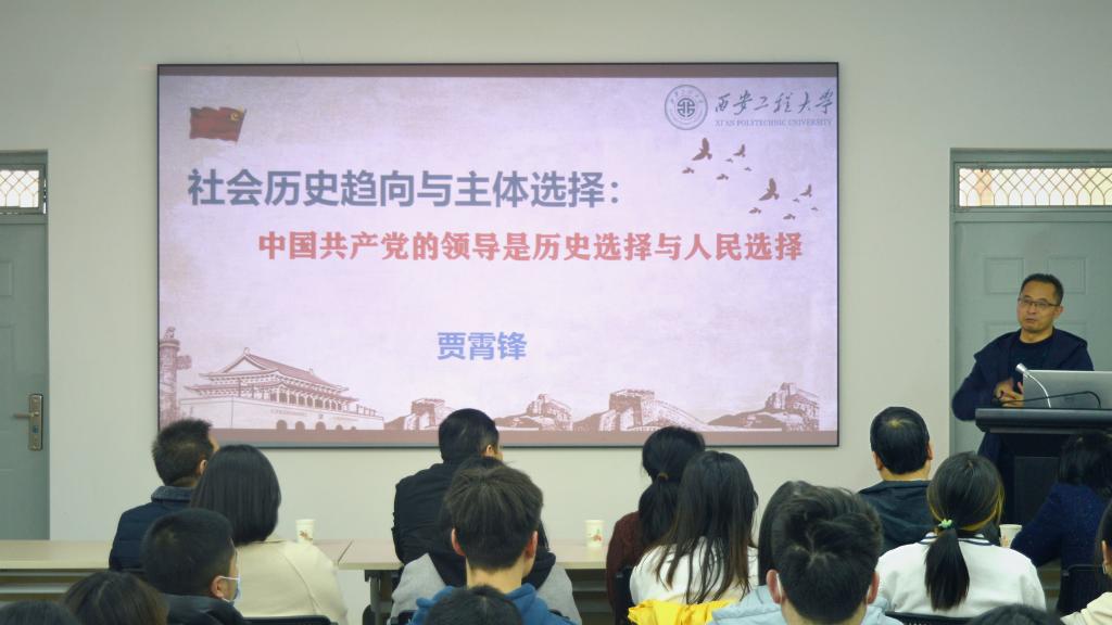 学习会上,贾霄锋做了题为《社会历史趋向与主体选择:中国共产党的领导是历史选择与人民选择》主题报告。辅导报告基于唯物史观,首先从社会历史趋向与主体选择的关系基本原理,分析了近现代中国发展道路选择、社会主义改造和社会主义建设问题选择、中华民族伟大复兴选择进程中,充分体现了中国共产党的领导是符合社会历史趋向与人民主体的选择。其次,阐述了伟大建党精神凝聚了历史选择与人民选择的精髓。最后,他分析比较研究了党的“三个决议”,分析了党在关键时刻把握社会历史趋向的能力与不忘初心、牢记使命的本色。他说:坚持习近平新时代中国特色社会主义思想,建成富强民主文明和谐美丽的社会主义现代化强国,一定要坚持中国共产党的领导!这是历史的选择、人民的选择!