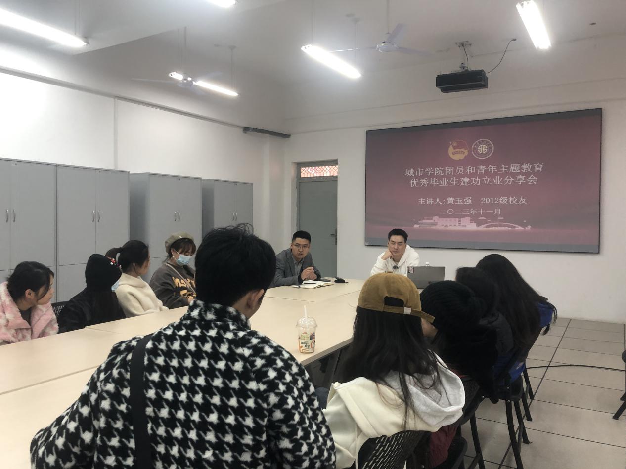 11月8日下午,城市学院举办团员和青年主题教育之优秀毕业生校友建功立业分享会。学院党委委员、院长助理胡星哲,学院团委书记陆瑞成、2020级环境设计专业毕业生参加分享会。分享会由奇幻美术体验馆创始人、beat365环境设计2012级校友黄玉强主讲。