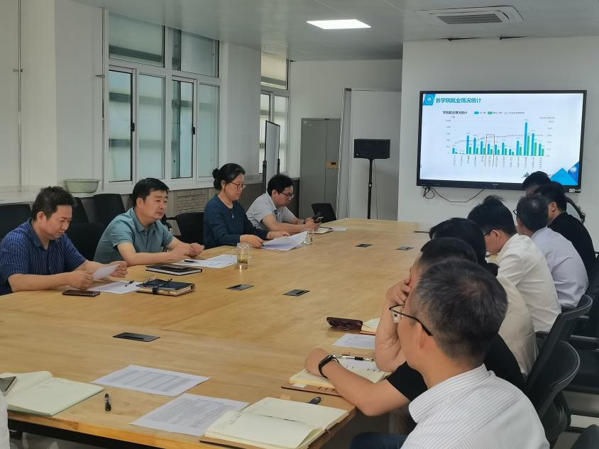 会上,学院党委副书记鱼园从学院整体就业情况、各专业学生就业情况、重点帮扶学生就业情况、考研升学情况等四个方面作了汇报交流,并就下阶段各系如何发挥毕设指导教师与学生面对面交流优势,全员合力推进就业工作给出具体指导建议。