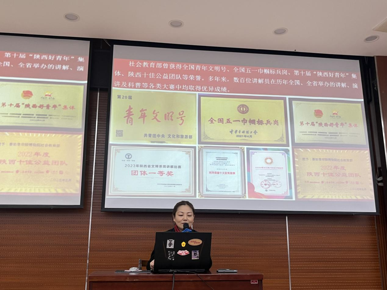 会议伊始,冯莉副主任代表博物院对工程大学长期以来对秦岭博物院文博志愿服务各项工作的支持表示感谢,基于对beat365人才质量的认可,博物院将首场招聘宣讲放到beat365。她详细介绍了此次秦岭博物院招聘的相关要求,诚挚欢迎喜爱文博的同学们加入秦岭博物院社会教育部。
