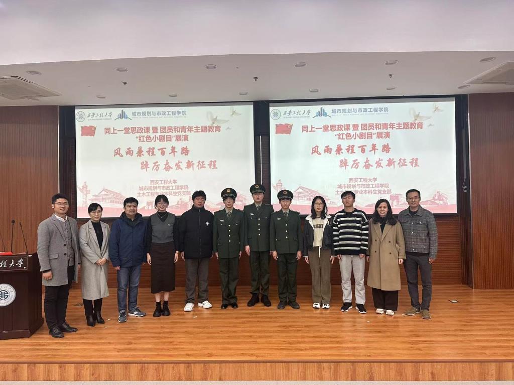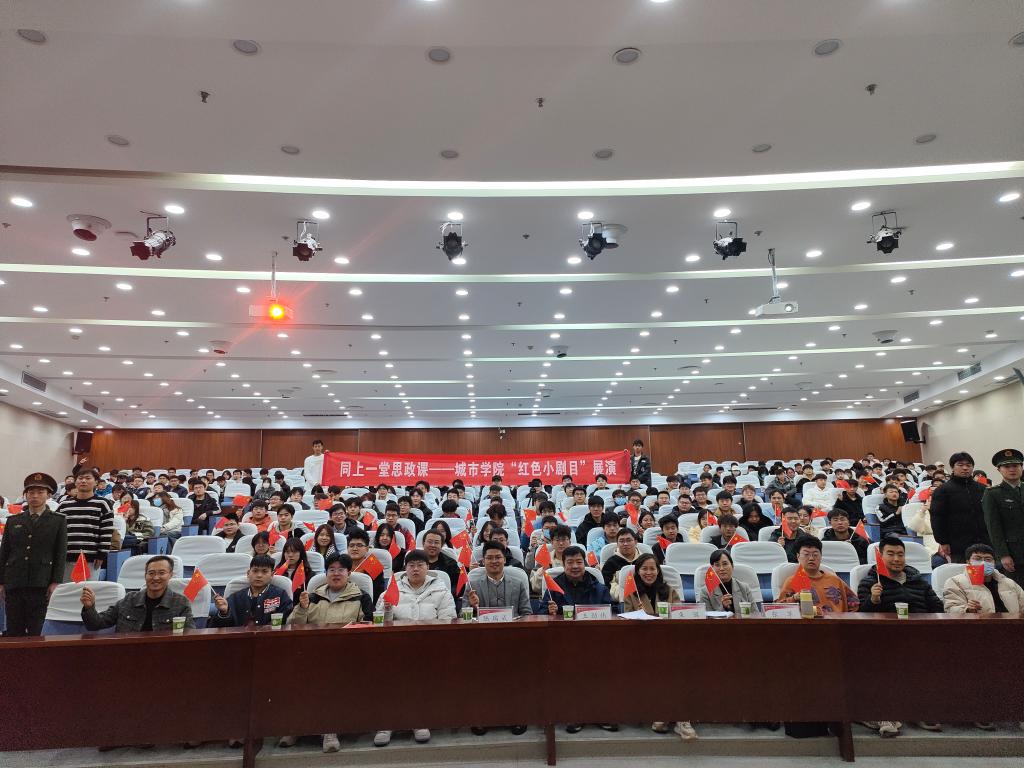 “红色小剧目”是城市学院土木工程专业本科生党支部的品牌活动,是支部党员在支部书记张苹老师指导下利用课余时间自编自导自演的情景小话剧,已先后在校内外展演十余次。剧目主要以革命英雄人物、时代楷模等为原型,通过讲述革命英雄人物故事、挖掘故事背后强大的精神信仰和红色文化,从而引导同学们更好地领会红色精神,自觉地把红色基因融入到人生血液中。本次展演的“红色小剧目”——《戍边》,通过讲述父亲和儿子两代边防军人以钢铁般之意志捍卫祖国领土的故事,诠释了戍边人的三道精神密码:信仰的力量、使命的传承、青春的火种,“一生只做一件事,我为祖国守边疆”、“宁可牺牲生命,不丢国土一寸”的铮铮誓言,映射出一代代边防军人赤诚爱国、以身许国、精忠报国的精神,鼓励新时代青年坚定爱国情怀、砥砺强国之志、实践报国之行,让爱国主义精神代代相传。现场生动形象的演出,感染着会场的每一位师生,他们情不自禁的挥动着手中的五星红旗,用经久不息的掌声表达着对戍边战士的崇高敬意。
