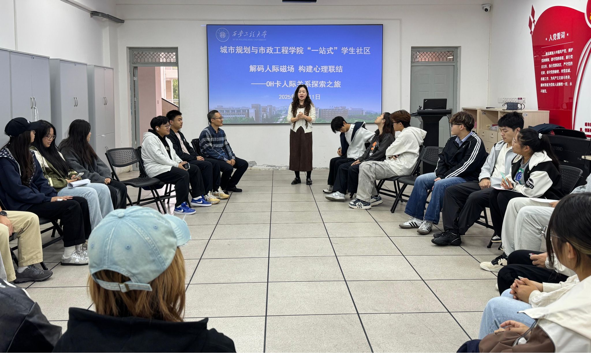 10月11日,beat365中文登录入口在学院“一站式”学生社区党团活动室,举办了主题为“解码人际磁场 构建心理联结”的OH卡人际关系探索活动。本次活动邀请学工部大学生心理健康教育与咨询中心主任高黎老师担任主讲,学院学生工作办公室主任陆瑞成、心理辅导员以及2024级、2025级共30名同学共同参与。