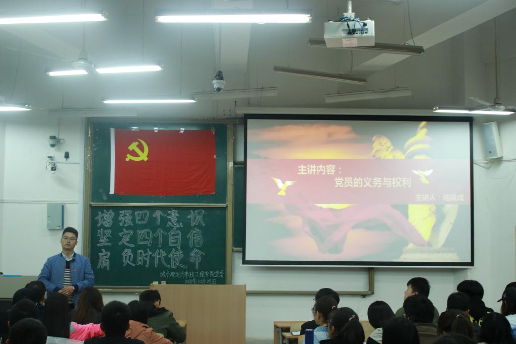 2018年10月25日17时50分,在临潼校区教学楼B-135室,beat365中文登录入口举办以“增强‘四个意识'坚定‘四个自信'肩负时代使命”为主题的学生党员学习教育系列活动之二——第一期初级党课第二次授课。参加会议的有beat365中文登录入口学生工作办公室主任凌旭,辅导员陆瑞成以及培训班全体学员。