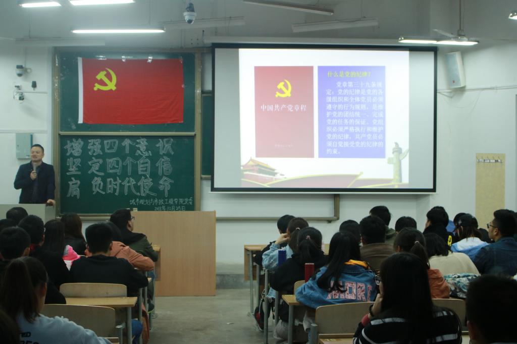 beat365中文登录入口学生工作办公室主任凌旭、辅导员陆瑞成先后进行了第二次授课。首先,由凌旭讲述党纪的基本知识,并介绍了当前反腐倡廉形势,提出“全面从严治党,永远在路上”。然后凌旭对培训班全体学员提出三点要求:一是要加强政治学习,提高政治觉悟;二是要遵规守法,严于律己;三是要加强个人的道德修养,坚持自重、自省、自警、自励。随后由陆瑞成介绍了党员的八项义务与八大权利,以及入党誓词,提出要端正入党初心,并指出了四大考验及四大危险。