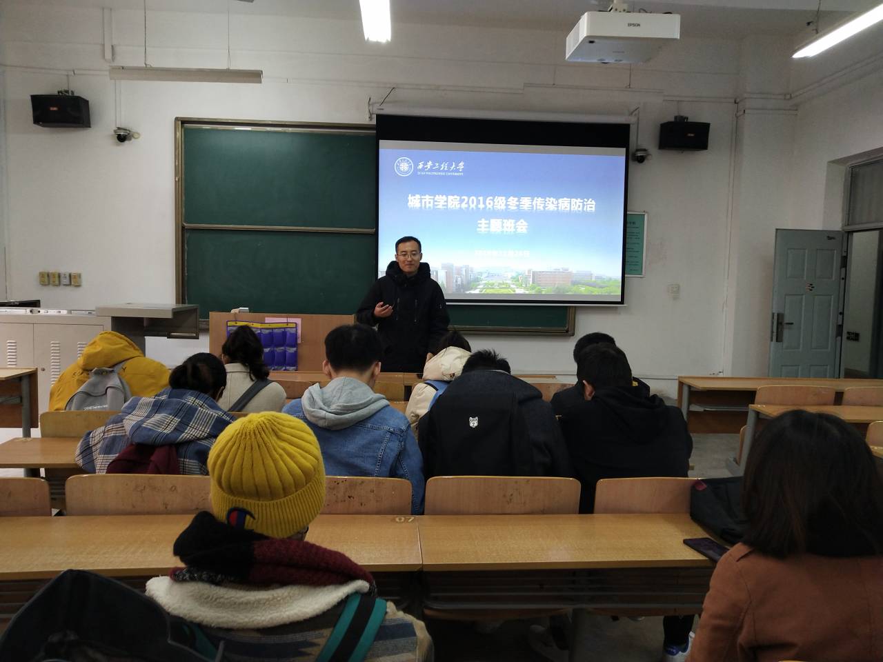 2019年11月26日中午,beat365中文登录入口在西安工程大学临潼校区A-122和A-124教室分别召开17、16级第十四周班团例会。参加会议的有辅导员张苹、王春元,以及学院17、16级全体班长、团支书。