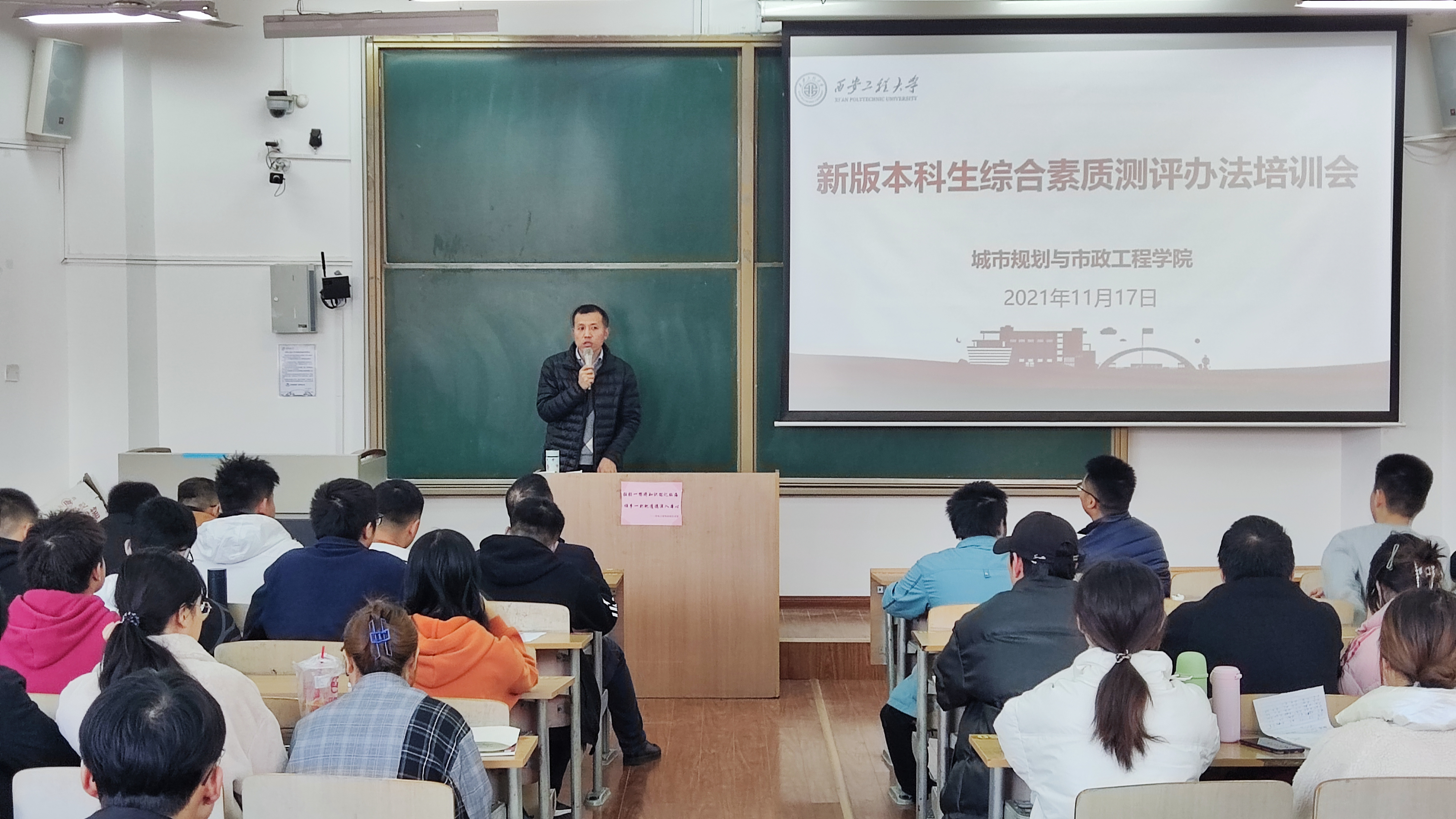 11月17日中午,beat365中文登录入口在临潼校区B-135教室举办新版本科生综合素质测评办法培训会,学生工作处学生资助中心主任代锴、学院学工办主任凌旭、辅导员张苹、陆瑞成、王春元,以及19、20、21级各班班长、团支书和学习委员参会。会议由凌旭主持。