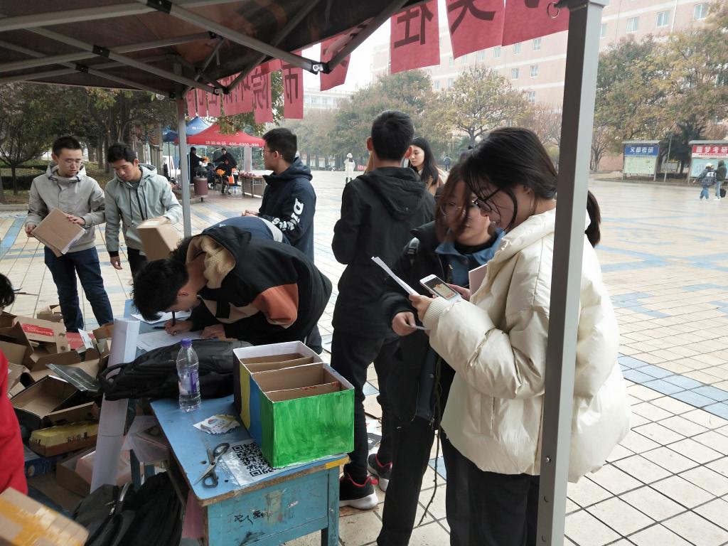11月17日晚21:10分进行了活动场地的布置,做好活动前的准备工作。11月18日早上7:30分值班干事早早到达中心广场准备值班,其余干事到达活动室进行活动工具的准备,确保活动的顺利进行。早上8:00活动正式开始,参与活动的人也随之来到现场,参与者手带几个纸箱,值班人员进行了热心接待。活动期间,在同学们上课时段,有三个工作人员负责每轮的值班工作。一人负责接待参与活动的同学,向来了解活动的同学们介绍我们的活动内容里参与方式同时负责开展小游戏,一人负责登记同学的个人信息及交纸箱的个数,还有一个整理纸箱的工作人员。中午12:00是我们活动的高峰期,同学们大都会在这个时间段来参与活动。此时中心广场排起了长长的队伍,大家都来积极的参与我们的活动,可见大家都十分的重视垃圾的回收与分类。活动不仅仅是纸箱的收集,同时参与者积极参与垃圾分类的游戏,活动组织人员向大家讲明规则,30秒内将印有垃圾图标的卡片分至对应“垃圾桶”,且正确率达到80%的同学可以获得我们精心准备的两盆多肉植物作为奖励。活动时间持续3天,beat365青分队和参与者的积极宣传,使得近乎一千五百人参与到活动中。活动进行到20日17:00已近乎尾声了,青分队无课干事于17:00到达中心广场,将收集到的纸箱进行整理并将完好的纸箱交由快递公司二次利用,无法利用的纸箱,我们联系了废品回收机构,交由废品机构进行统一处理,并将收益用于之后beat365志愿服务基地的联络创建。