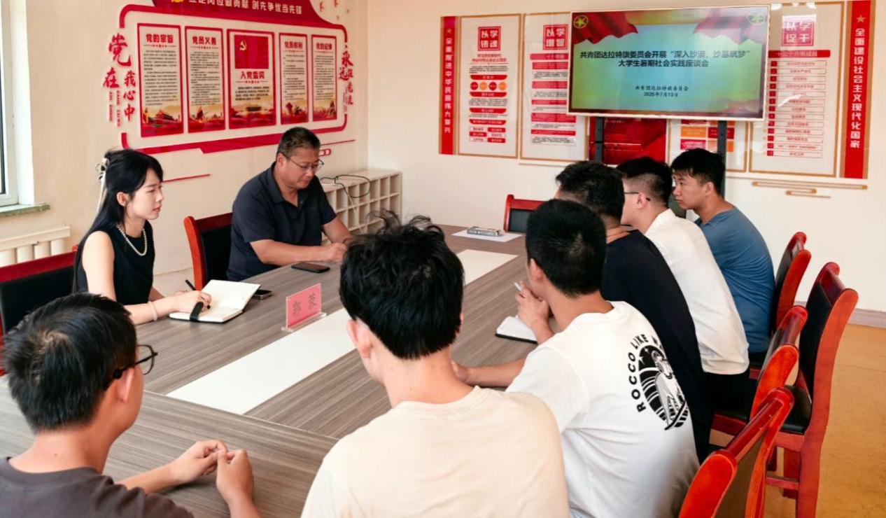 7月13日,西安工程大学赴内蒙古鄂尔多斯“深入沙漠,沙基筑梦”暑期社会实践团到达内蒙古自治区鄂尔多斯市东胜区达拉特旗,围绕实践活动规划、实地基本情况及防沙治沙现状等内容与共青团达拉特旗委员会开展座谈会进行深度交流,团旗委领导郭蓉、林草工作站站长曹军出席参加座谈并听取实践团汇报。