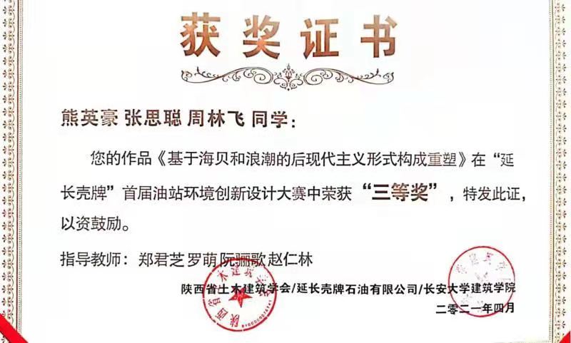 本次大赛由长安大学联合陕西省土木建筑学会、延长壳牌石油有限公司共同主办,西安交通大学、长安大学、西安建筑科技大学、西安工程大学等八所高校协办,陕西省土木建筑学会为技术指导。大赛以打破传统思维,寻求创新发展为主题,旨在探索新时代加油站环境多元化、多功能、多创意的设计模式。大赛共收到参赛作品56幅,经专家委员会的认真评选和严格审定,最终确定一、二等奖4名,三等奖4名及优胜奖6名。