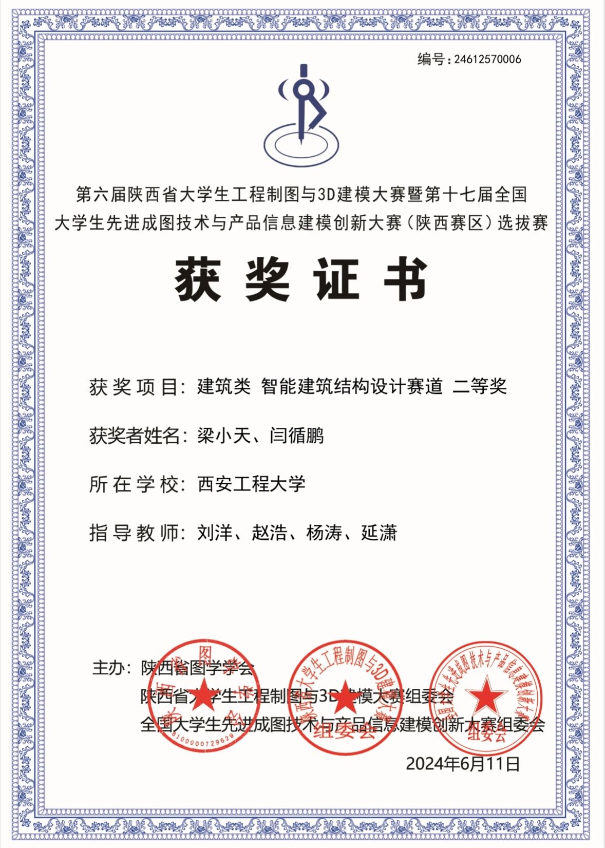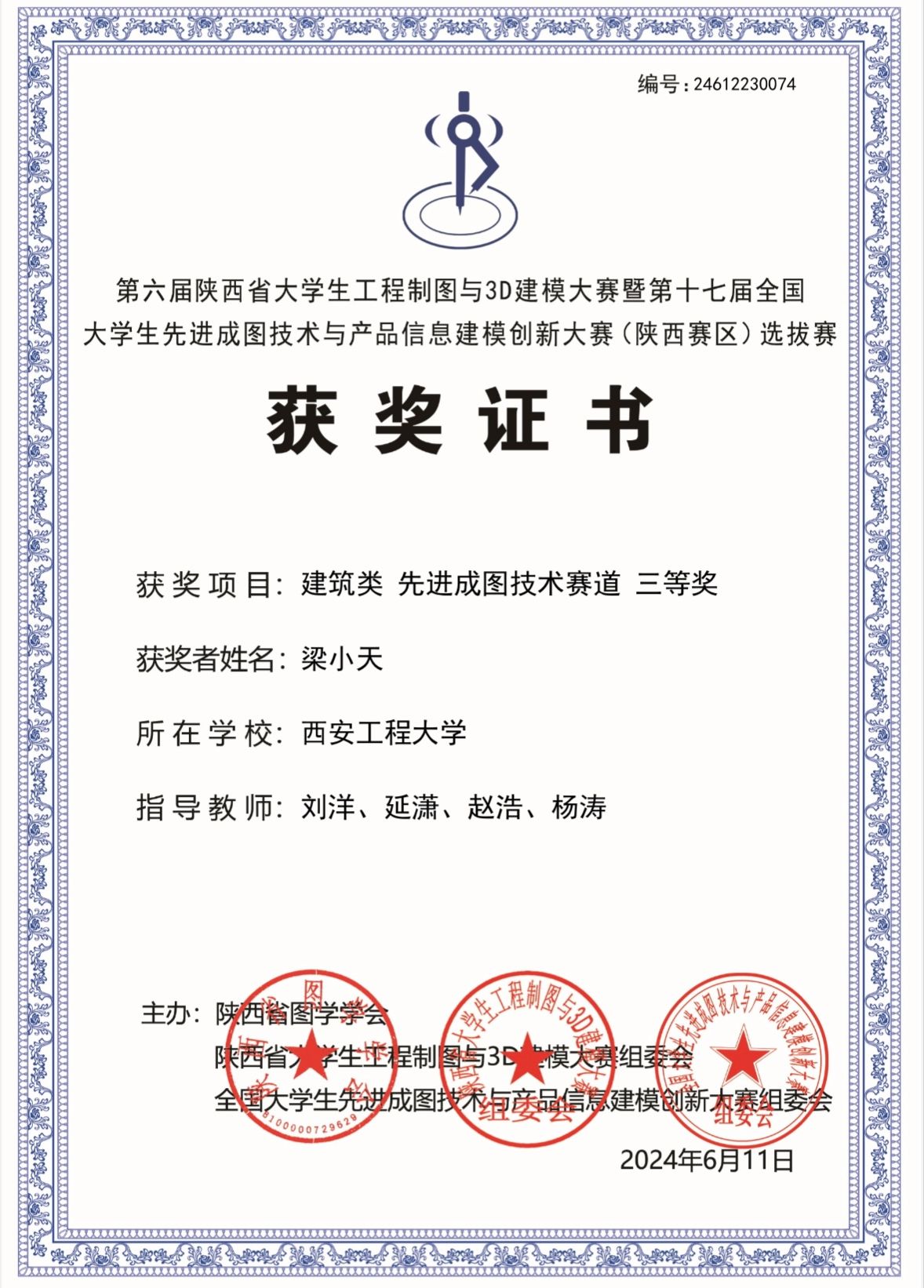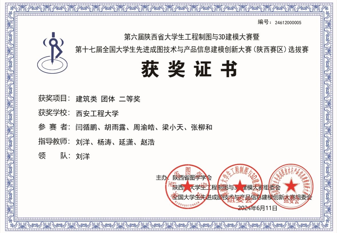 该项比赛自2024年3月在beat365启动,经校内培训与初期选拔,推选出1支优秀队伍参加省赛。经激烈角逐,城市学院学子在陕西省第六届大学生工程制图与3D建模大赛暨第十七届全国大学生先进成图技术与产品信息建模创新大赛(陕西赛区)中荣获建筑类团体二等奖1项,智能建筑结构设计赛道二等奖1项,BIM创新应用赛道并三等奖1项,获得个人一等奖1项,二等奖2项,三等奖4项,并以优异成绩成功晋级全国大赛;指导教师刘洋、杨涛、延潇、赵浩获优秀指导教师二等奖。
