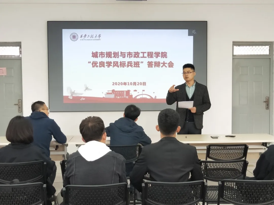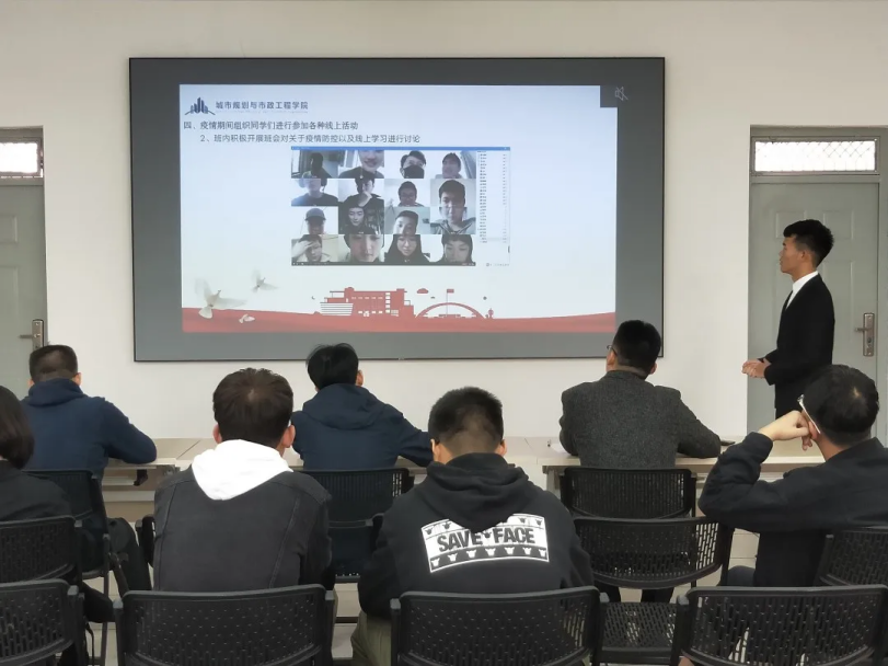 答辩评审中,各候选班级从本班的班级文化、学风考纪、校园活动参与度以及疫情在家班级建设等方面介绍本班班级文化并分享建设成果和经验。