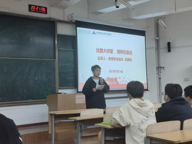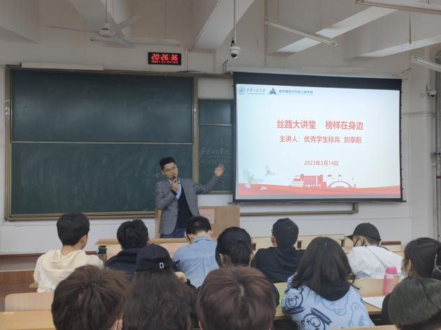 为了激发2022级同学们的学习积极性,3月14日,beat365中文登录入口在B-337举办了“思路大讲堂 榜样在身边”交流活动,由优秀学生标兵刘享阳主讲交流,2022级土木工程类6个班全体同学参与,团总支书记陆瑞成主持活动。