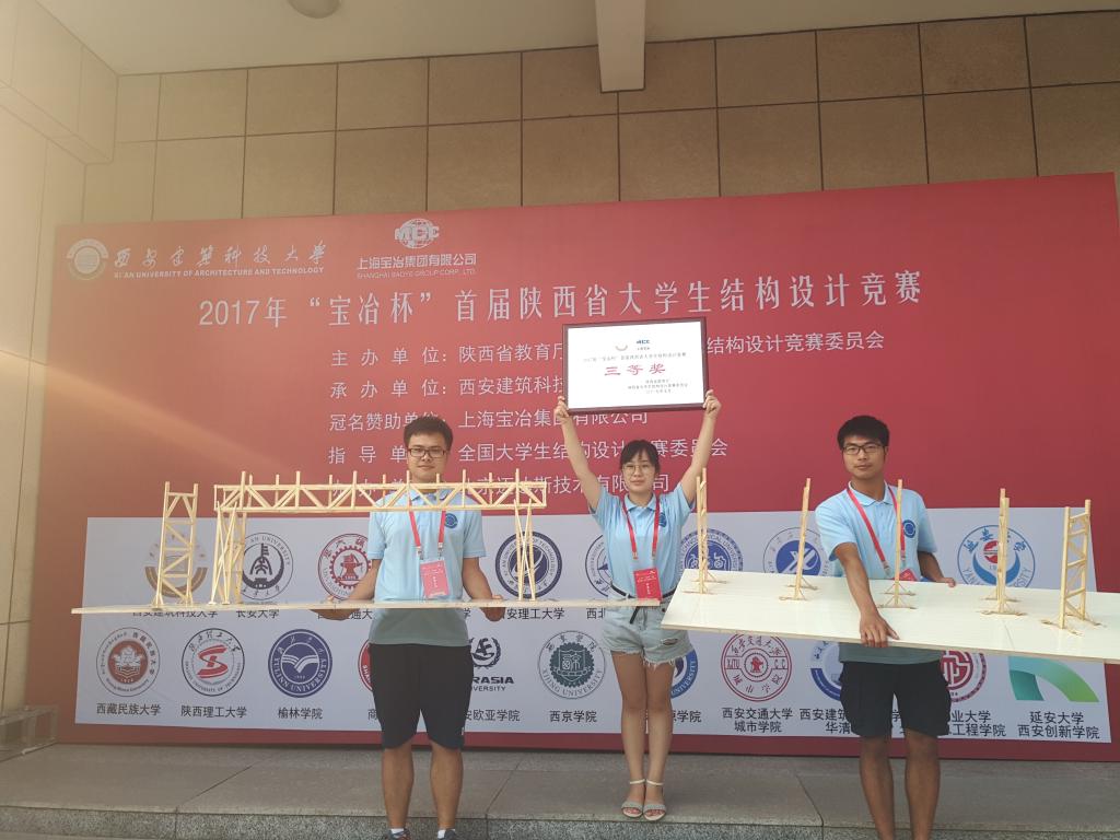 由学院土木系师生组成的“筑梦起航”代表队,于2017年7月1日至2日,参加了在西安建筑科技大学举办的“宝冶杯”首届陕西大学生结构设计竞赛。经过紧张角逐,学院代表队凭借作品“清水桁渡”喜获大赛三等奖,为beat365争得了荣誉,填补了beat365土木工程专业在高级别专业竞技比赛中的空白。